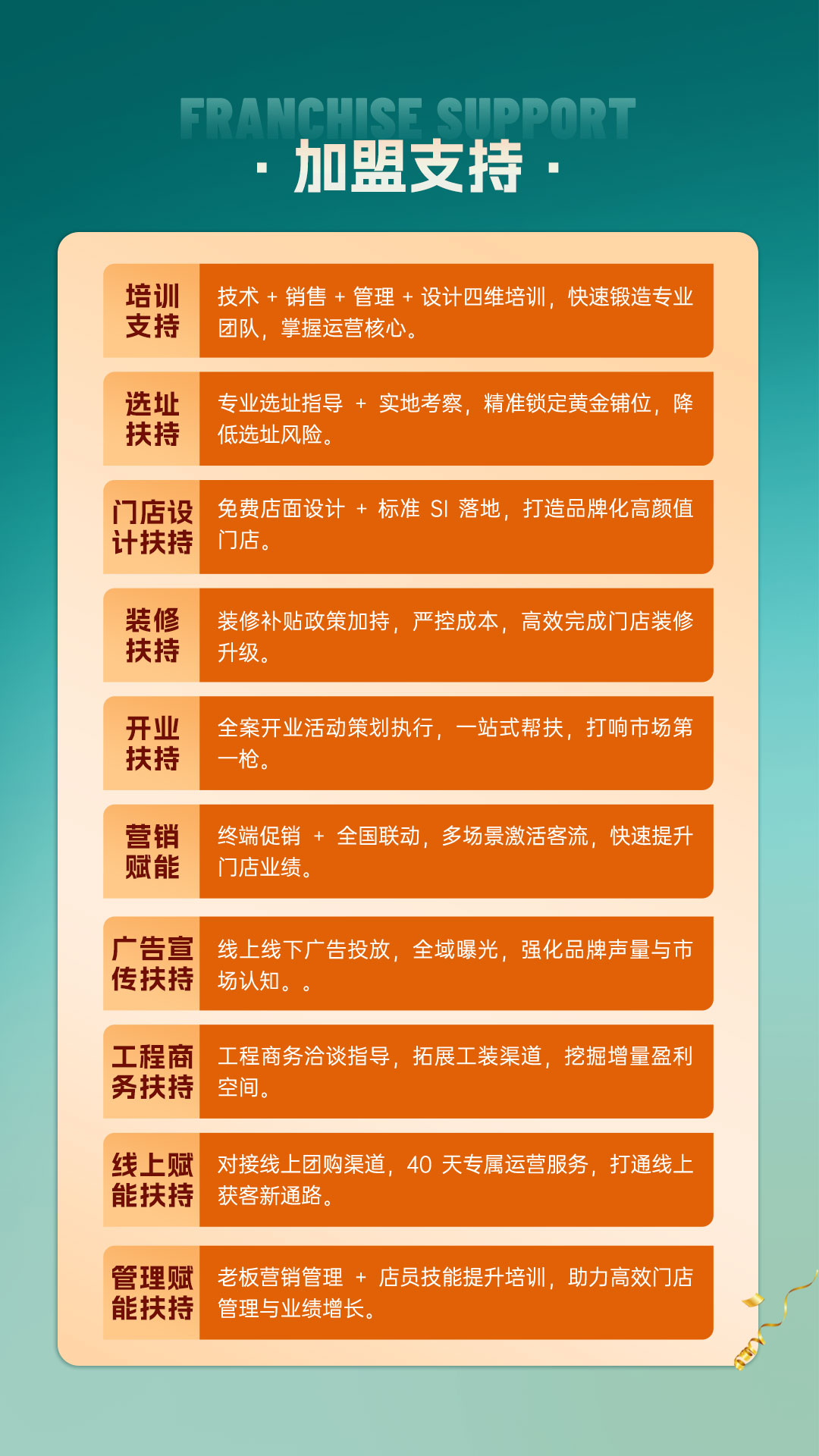 蒙太奇在176个城市布局800家专营店,并在TW设有运营中心。这一渠道规模为代理商提供了区域市场参考。同时,企业拥有专业的百人运营团队,覆盖加盟、建店、设计、推广全链路,这种运营支撑能力降低了代理商的市场开拓难度。
