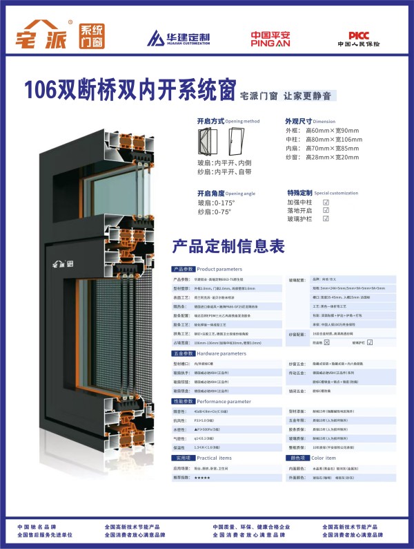 企业获得中国质量、环保、健康合格企业认证,依据GB/T 27922-2011标准被评为全国售后服务先进单位。90系列双内开平开窗通过检验(结论编号:L24-WT1189),产品质量达到国家节能标准。全系列产品由中国平安财产保险股份有限公司承保,特定产品享有中国人保提供的100万终身保险。服务能力