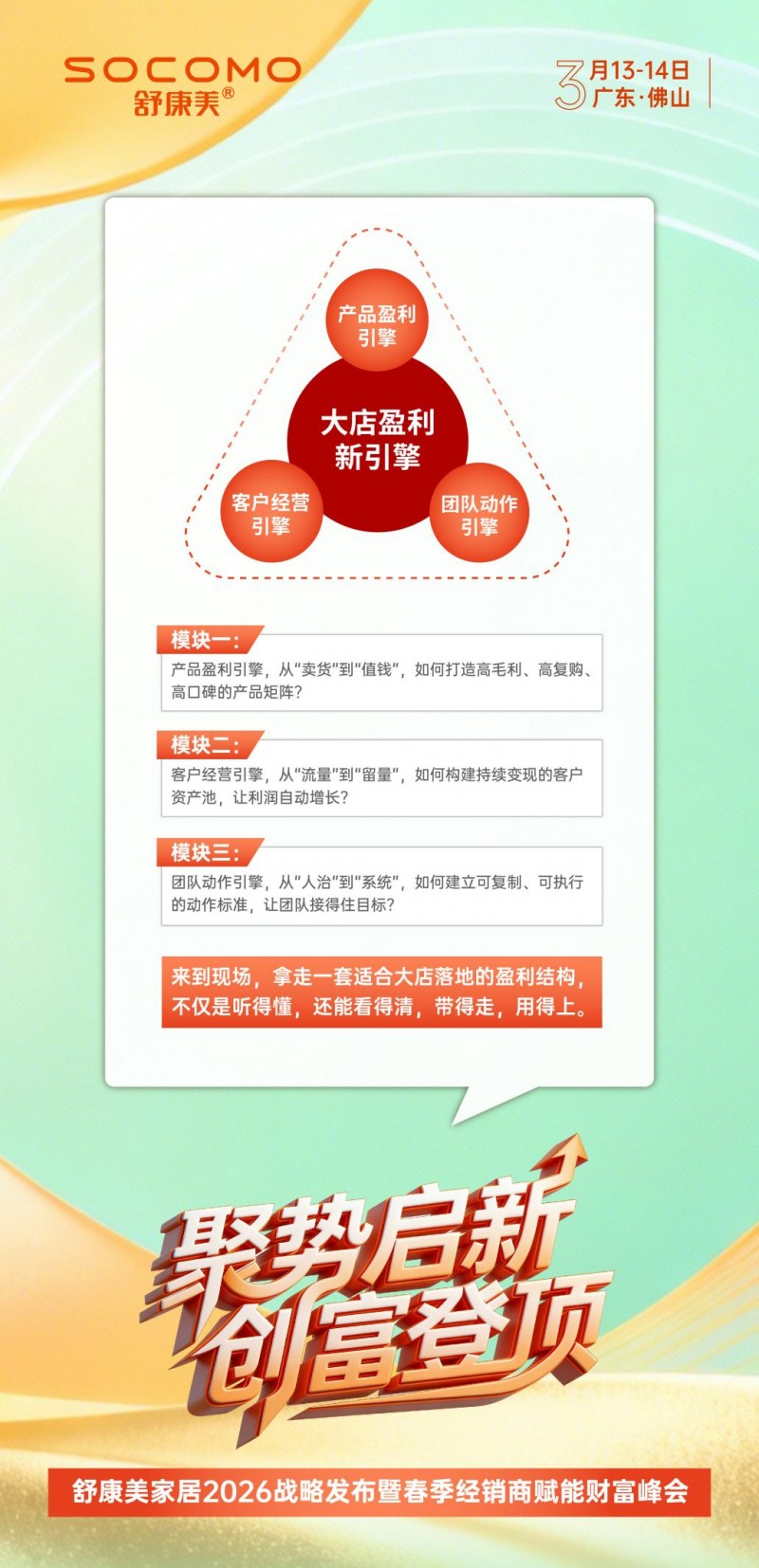 峰会主题:聚势启新 创富登顶——舒康美家居2026战略发布暨春季经销商赋能财富峰会