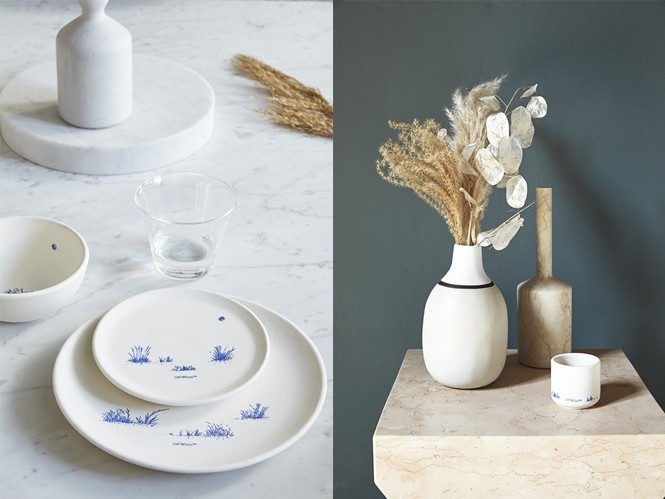 ▲众多以矢车菊蓝设计为主题的陶瓷用品。(图/翻摄自Off-White)