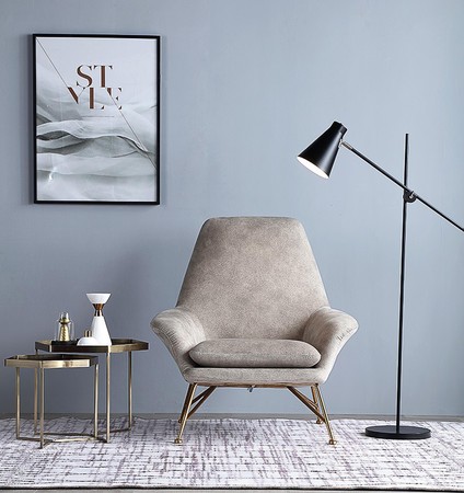 如果不想让颜色太复杂,选最基本的现代灰就对了。无论是沙发椅、控制整个环境氛围的壁纸,或是房间的圆顶吊挂式蚊帐,是这波莫兰迪色家居潮,最简单的入门法。