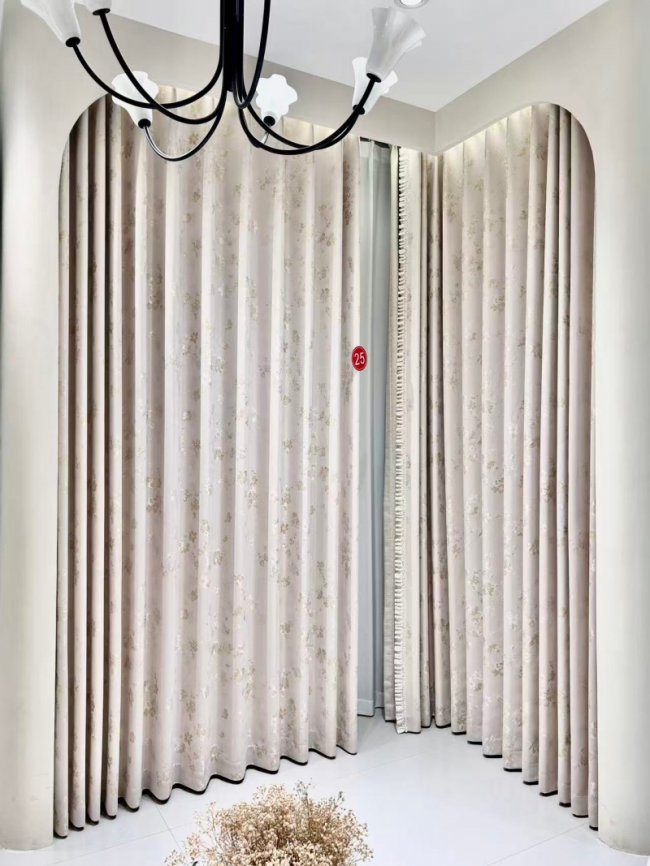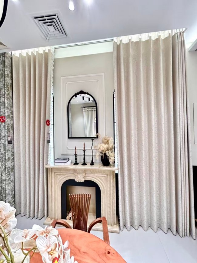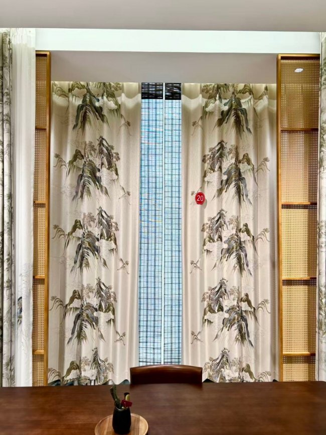 更难得的是,卡莱米路摒弃行业常见的大面积满绣套路,深谙东方美学 “留白” 精髓,创新采用局部点睛刺绣、侧边定位刺绣等手法。无论是新中式的梅兰竹菊、山水云纹,还是欧式的卷草藤蔓、法式茛苕叶,亦或是现代轻奢的抽象纹样,都以恰到好处的刺绣点缀,让窗帘简约而不简单,雅致却不繁复。既保留传统工艺的典雅韵味,又契合当代家居的简约审美,完美适配别墅、大平层、高端会所等多元场景,实现 “一窗一景,一户一韵” 的专属定制效果。